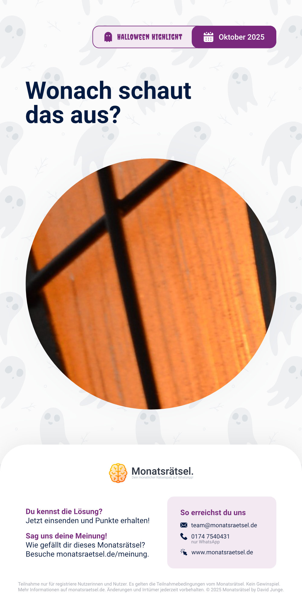 Im Jahr 2025 gab es insgesamt 17 Rätsel. Besondere Aktionen waren das Lieblingsrätsel 2025, das Oster-Emoji Gewinnspiel, das Halloween Hightlight mit einem Zusatzrätsel im Oktober und der Adventskalender mit 5 Rätseln. Außerdem war es das erste Jahr mit dem Rätselkonto.